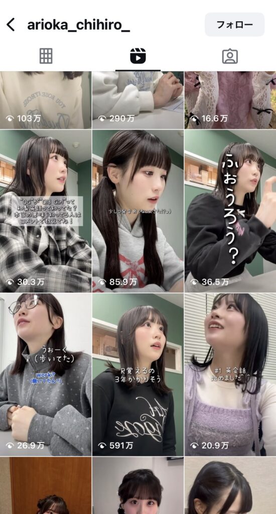 英語学習初心者である有岡さんが、英会話を習得するために奮闘する姿をリール動画で発信します。