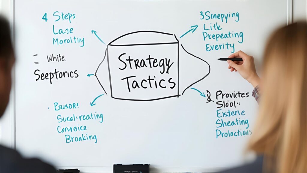 - 抜け道:戦略に照らして、優先すべき戦術を絞り込む。KPIを設定し、小規模で検証→成果が出たものをスケールする。